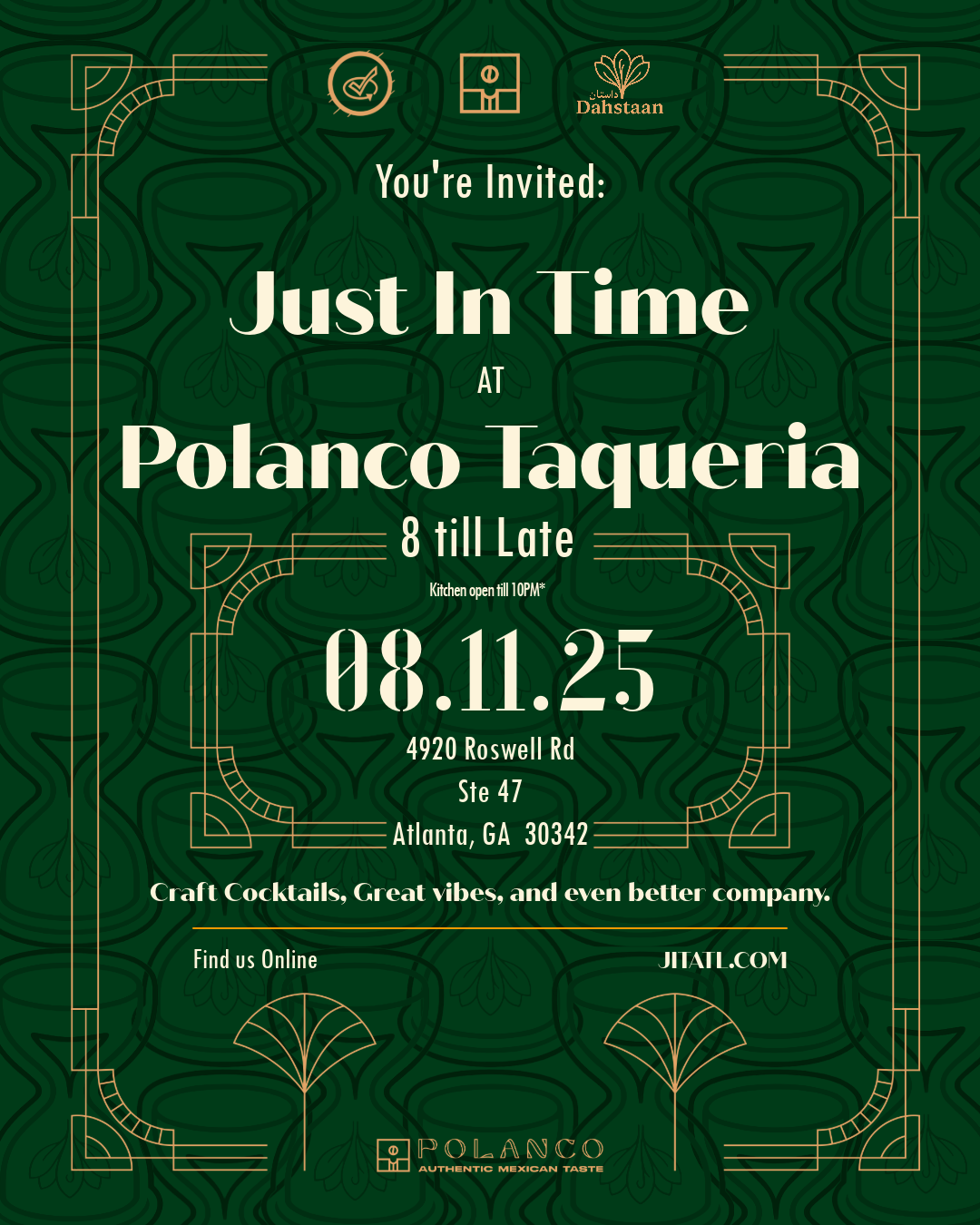 Just In Time crew take over Polanco Taqueria. Bass music, Craft cocktails and immaculate vibes.